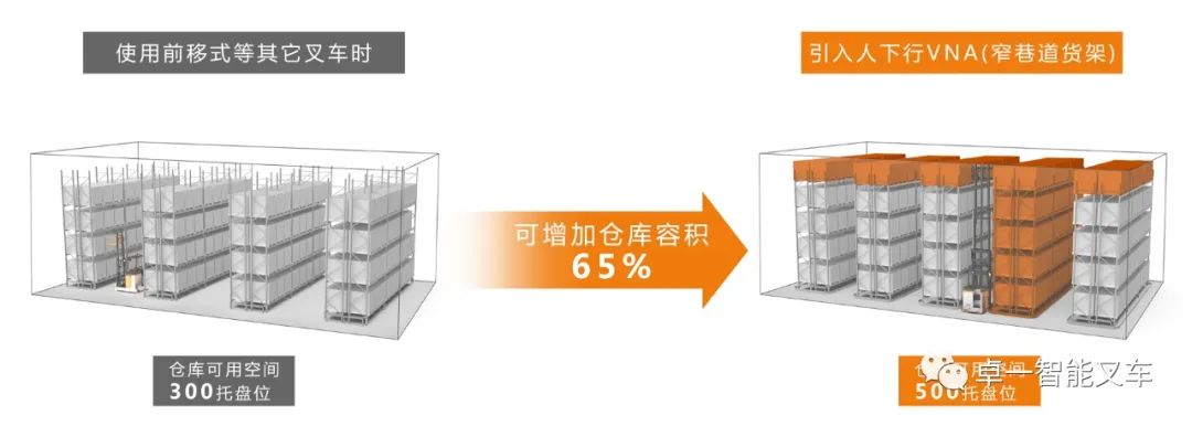 加大货架高度,缩短货架间距离,将原先仓库平铺货品区域进行二次规划,加深货架,为客户提升了65%的仓储容积率。