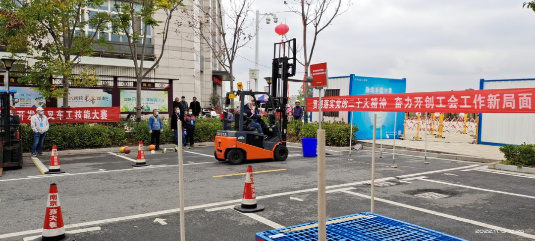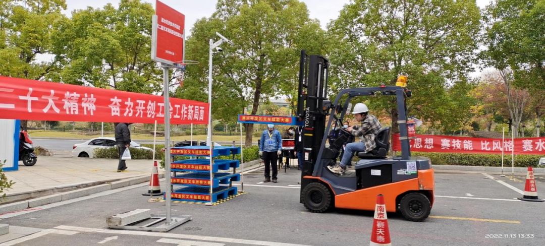 为进一步弘扬劳模精神、劳动精神和工匠精神,学习贯彻党的二十大精神,11月13日,溧水开发区总工会、智能家居产业链党建联盟、劳保所、安监站联合举办2022年溧水开发区叉车工技能竞赛。溧水区总工会副主席简祖新致辞,柘塘街道党工委委员、宣传委员、统战委员、溧水开发区总工会主席杜少蓓,溧水区总工会劳经部部长、基层建设部部长王云琨等到场祝贺。