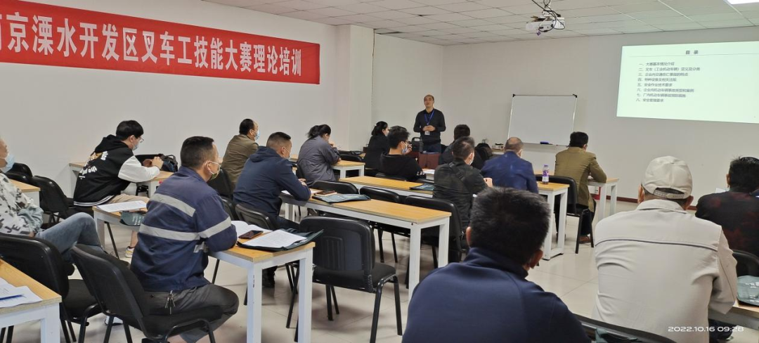 竞赛前,主办单位邀请到第三方南京赛夫泰职业培训学校的专业老师为参赛选手进行理论培训和实操演练,切实提高参赛选手业务能力,熟悉比赛规则,要求选手严格遵守叉车操作流程,提高安全驾驶意识,降低叉车故障率和维护成本,消除安全隐患,保障叉车技能竞赛安全顺利开展。