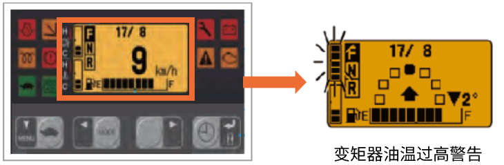 液力变矩器油冷却性能的提升,变矩器连锁功能等能有效缓解变矩器过热的问题。同时,全新多功能显示器还可以实现变矩器油温过高警告,实时监控变矩器温度。