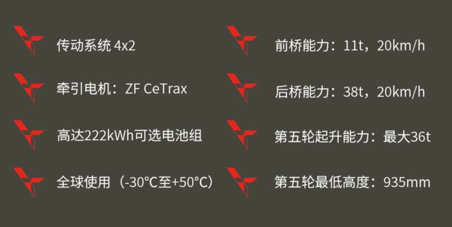 Terberg YT203 EV采用Terberg最新EV技术,性能可与柴油发动机相媲美,支持再生制动,而且运动部件更少,在节约能耗的同时还降低了维护成本。采用热管理系统 (TMS)的电池组可在全球任何气候条件下使用,客户还可以选择不同容量的电池包来适应不同的续航需求。