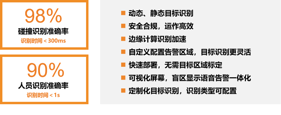 利用安装在工业车辆上的摄像头进行感应和探索车辆周围环境,进行静态、动态物体的识别、侦测和追踪,提前让驾驶员察觉到可能发生的危险,并采取自动减速及制动措施,有效提升驾驶安全性,保证工厂区域内运输环节不发生碰撞风险。