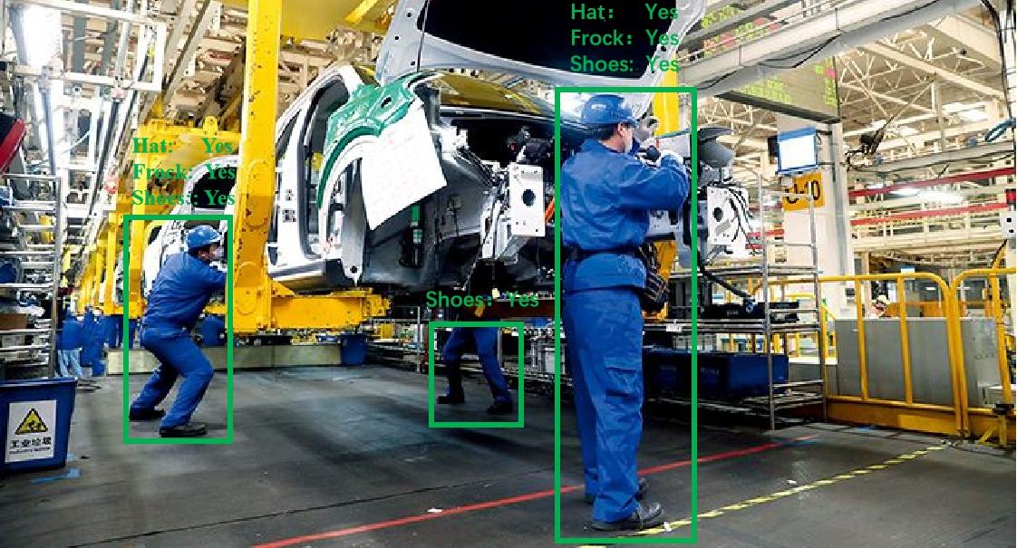 不过说起生产作业过程中的穿戴规范,可不仅仅有上文提到的手套,还包括工作服、工作鞋、工帽、头盔、护目镜等一系列适应不同生产环境和生产要求的相关装备。为保证设备操作的安全性和便于生产管理,在同一工厂的不同生产车间也经常会有各不相同的穿戴要求。并且,在大型的工厂之中由于生产车间数量和类别多、工作人员多且混杂,如果靠人员肉眼监督管理将会非常困难。