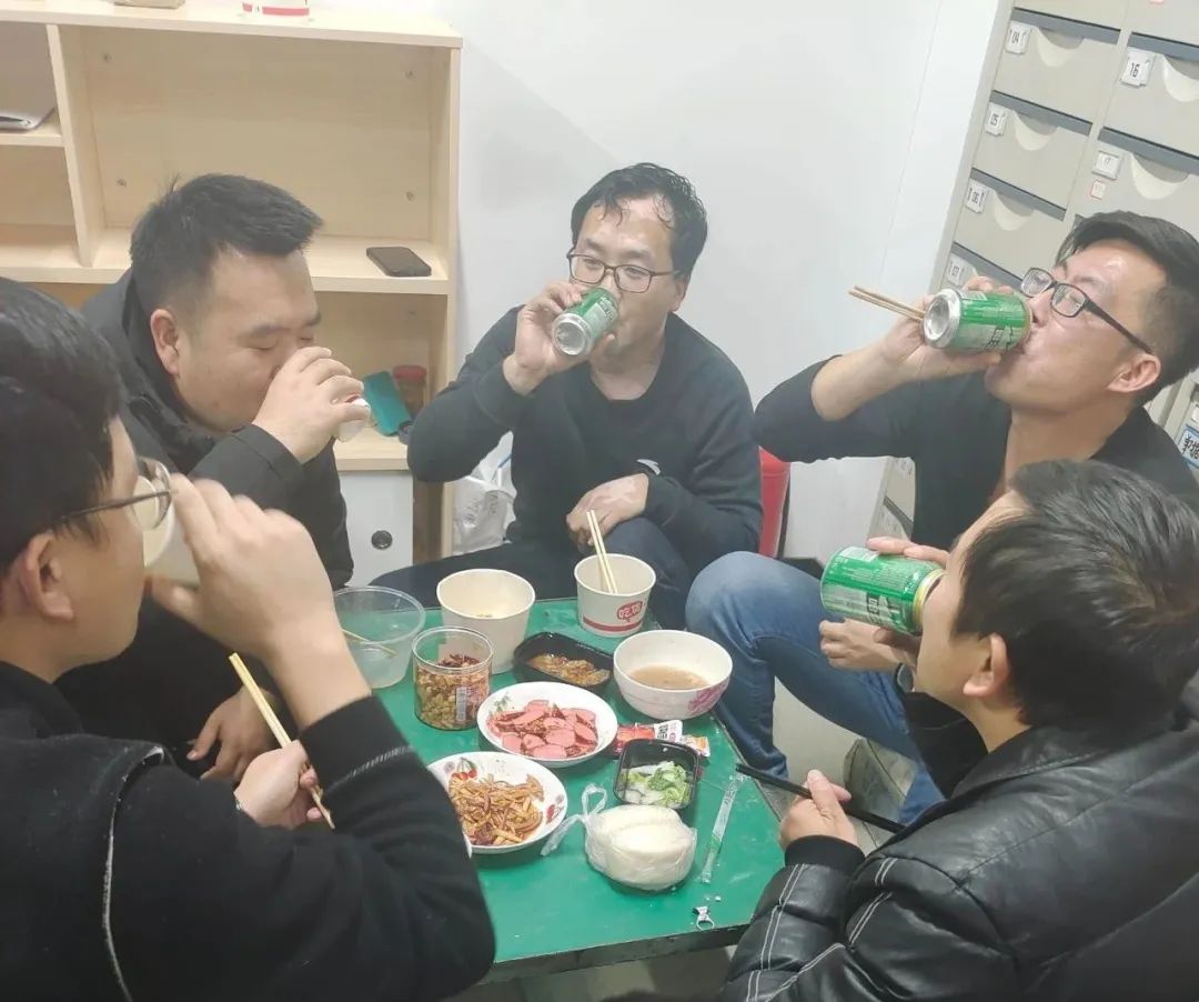 工作是为了更好的生活,在公司坚守岗位的同事无法返回家中与家人团聚,于是就把工作当成了自己的家。辛苦工作一天后,大家聚在一起看2022世界杯球赛,吃零食、喝啤酒,畅谈未来,欢声笑语,享受难得的惬意时光。