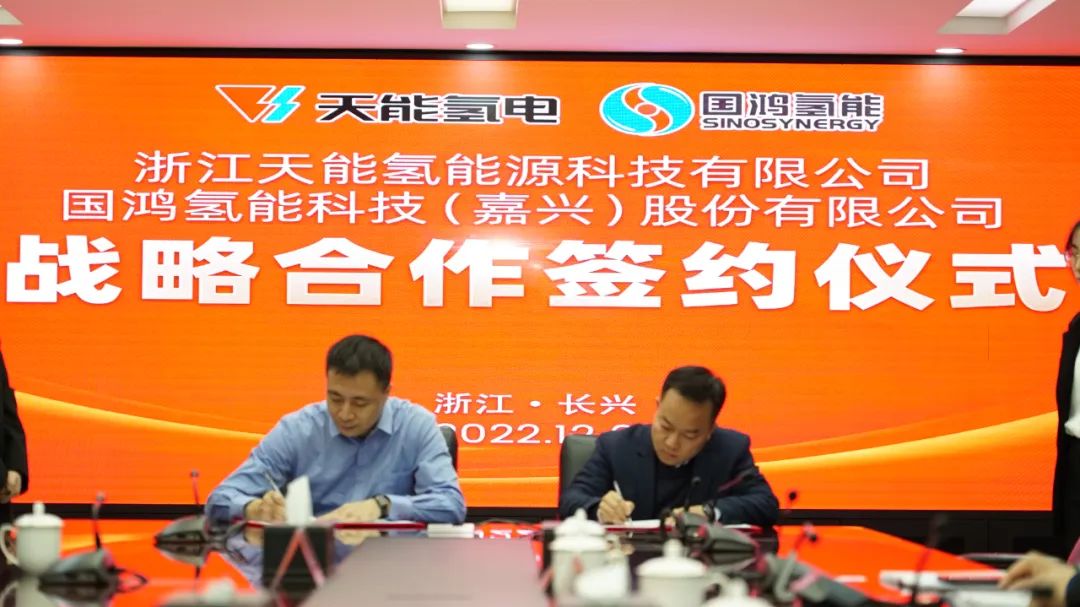 12月6日,浙江天能氢能源科技有限公司与国鸿氢能科技(嘉兴)股份有限公司签订战略合作框架协议。天能氢能源事业部总裁熊云与国鸿氢能常务副总经理张哲军出席并代表双方签署合作协议。