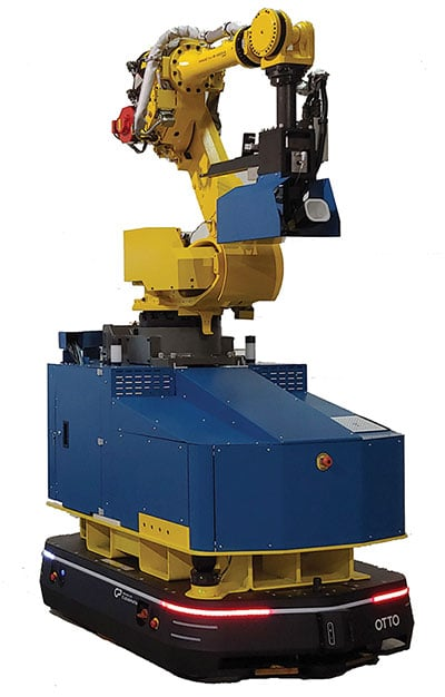 Capriol 的 MNT 型号结合了 Otto Motors 1500 自动化移动机器人和 FANUC R1000 系列机械臂,专为处理中型有效载荷而设计。