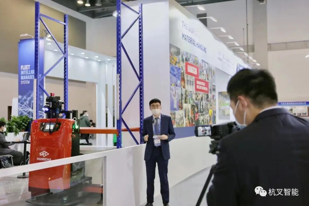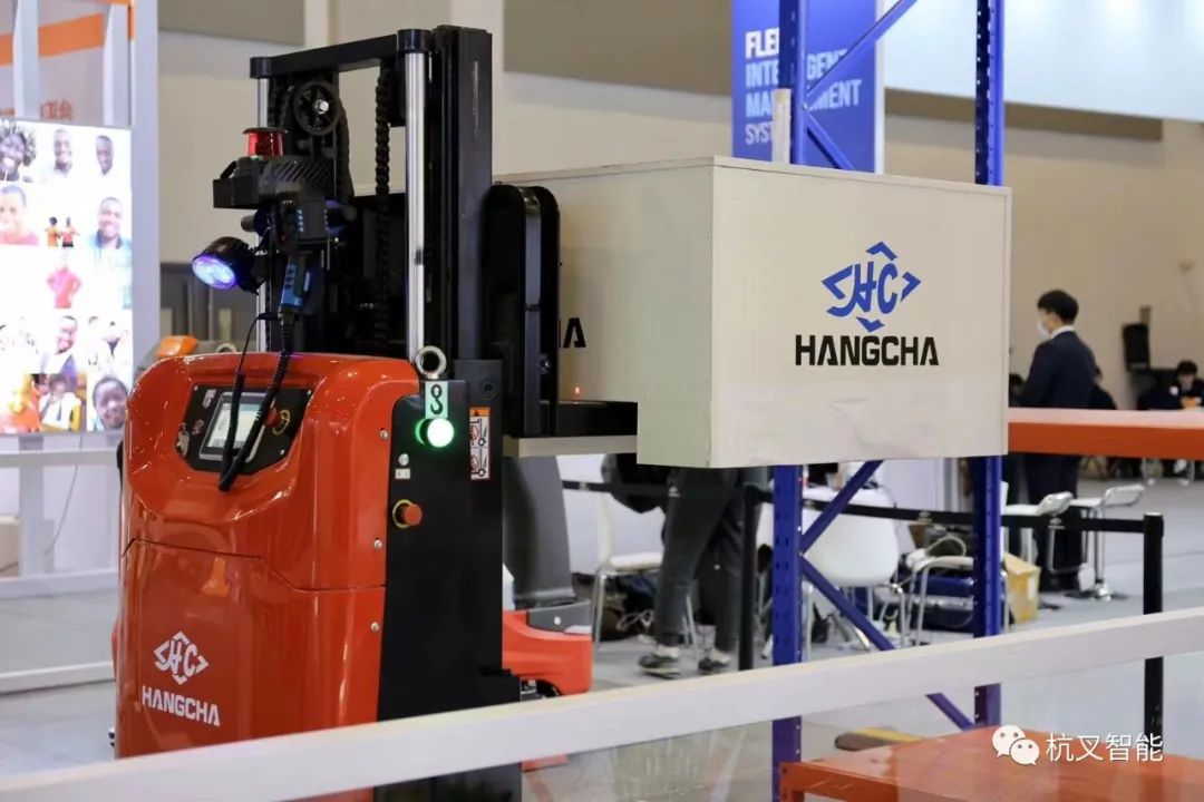 杭叉智能2t迷你堆垛式AGV正在展区做演示
