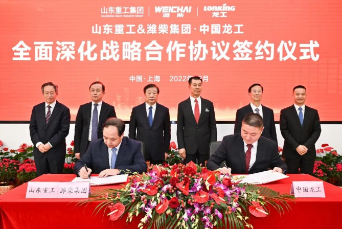 12月15日下午,山东重工、潍柴集团与中国龙工在上海签署全面深化战略合作协议。山东重工集团党委书记、董事长,潍柴动力董事长谭旭光,中国龙工控股有限公司董事局主席、首席执行官兼总裁李新炎出席活动并讲话。
