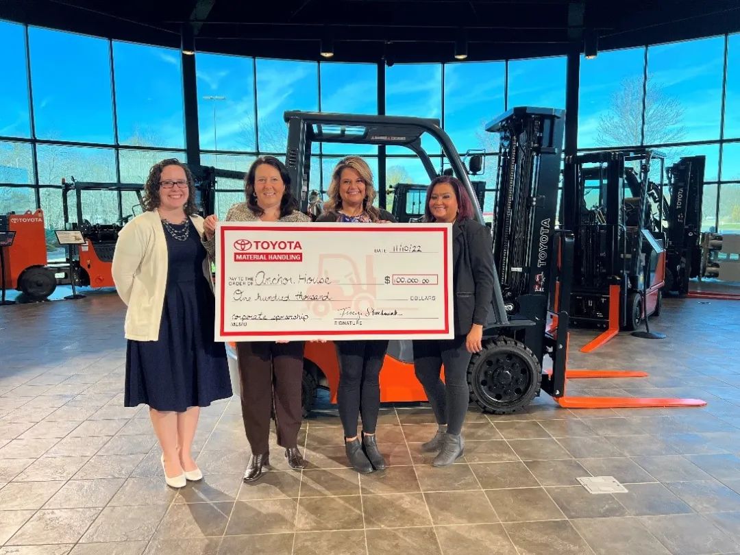 丰田物料搬运公司人力资源副总裁Tracy Stachniak说:“丰田物料搬运公司很荣幸能与这个当地组织合作,它对我们社区的许多家庭和个人都有影响。Anchor House是社区的主力军,我们很自豪,这种合作关系将使庇护所能够扩大他们帮助有需要的人的方式。”