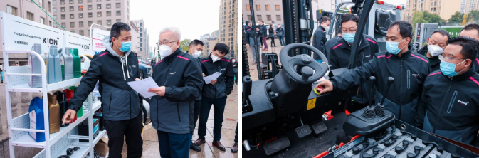现场,凯傲中国销售与服务副总经理黄元清先生、凯傲亚太质量总监施航先生、凯傲中国经销商销售总监林国伟先生,分别就凯傲中国一体化的质量体系、“一个凯傲”的售后服务机制进行了介绍。同频共振,快速响应,做好经销商拿单拓客的坚强后盾。