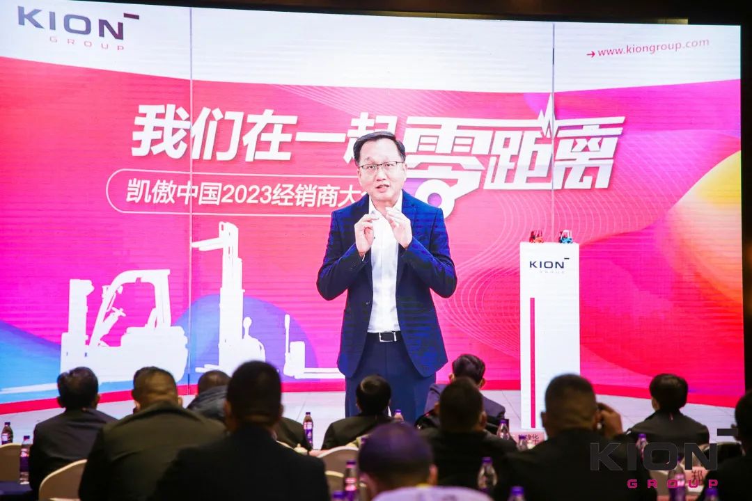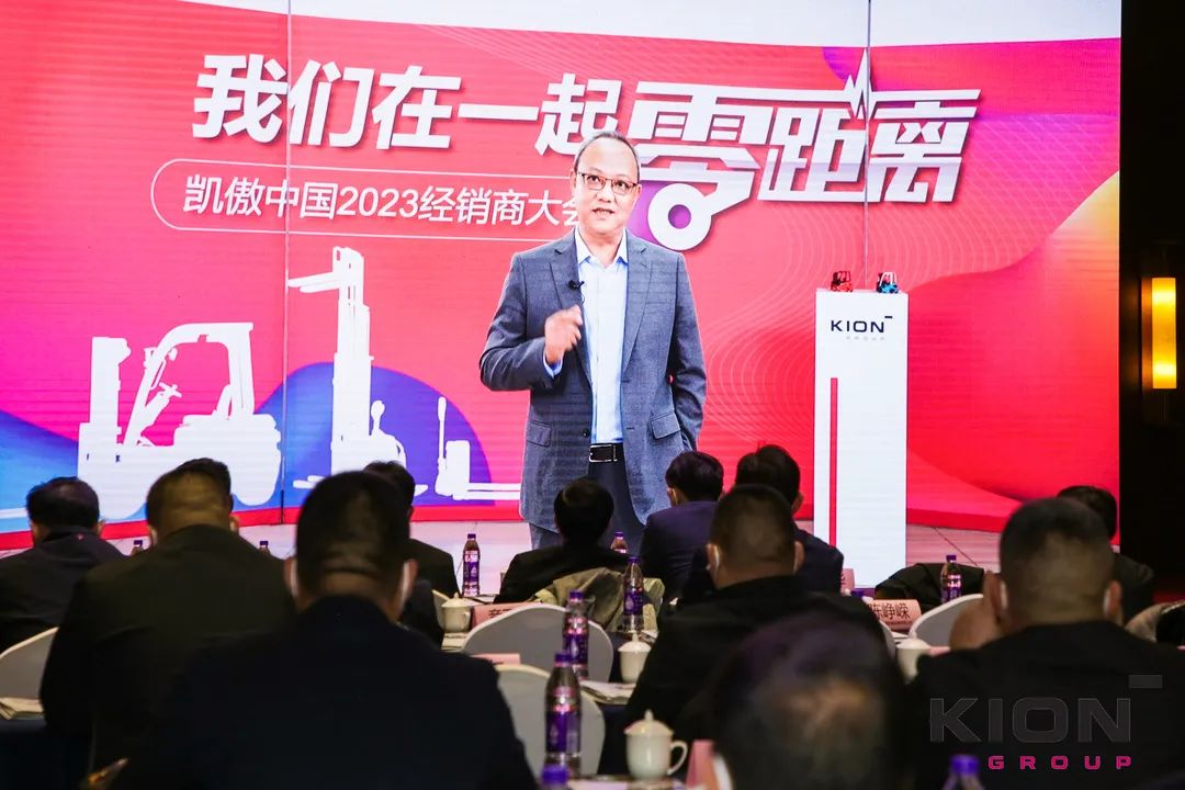 活动中,凯傲集团董事兼凯傲亚太及美洲区总裁郭进鹏先生线上致辞,2022年的外部市场环境依然严峻,凯傲集团实现了双位数的增长,郭总对所有经销商伙伴们与凯傲携手并肩的辛勤付出表示感谢,并与大家深入分析工业车辆市场环境和趋势,提出了凯傲中国“零距离”经销体系。分别从组织、产品、营销、销售、服务和质量维度,深入解读对经销商的赋能与支持。