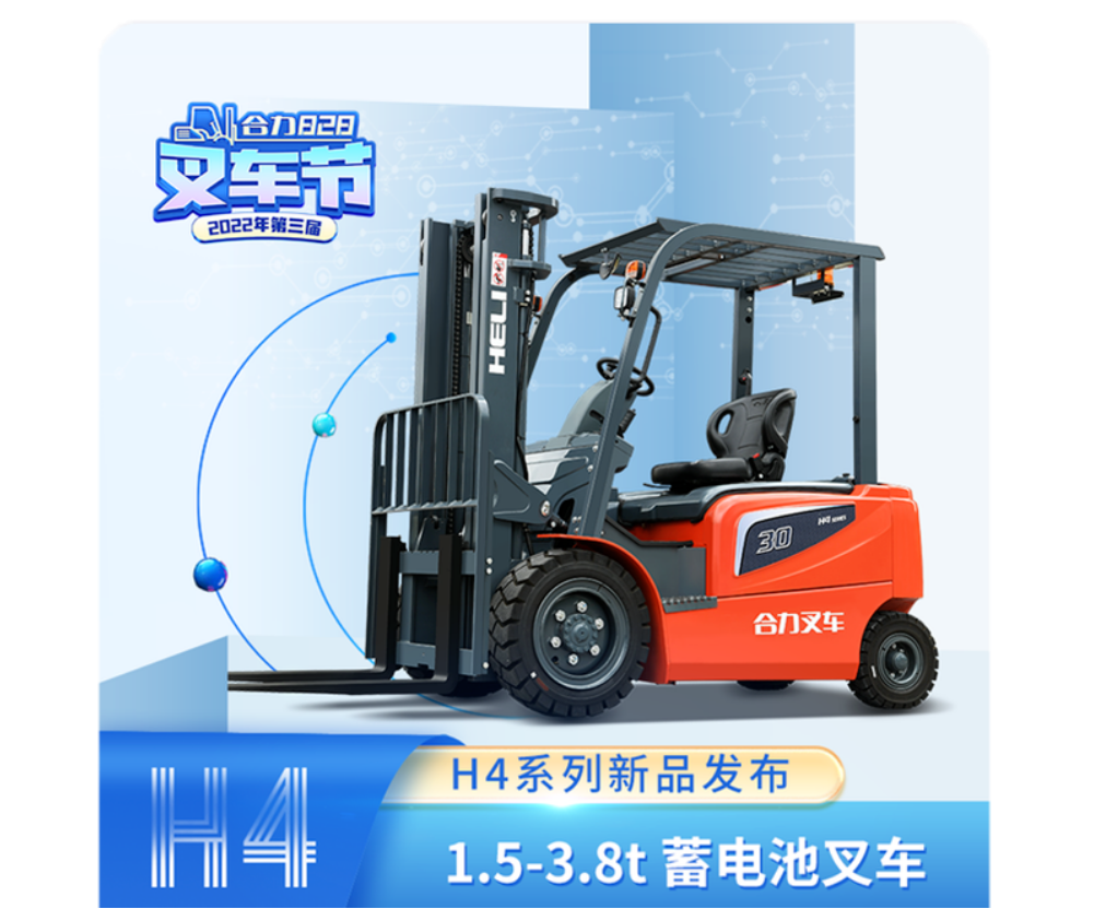 8月,合力在第三届828叉车节开幕式上发布了合力H4系列 1.5-3.8t电动叉车。