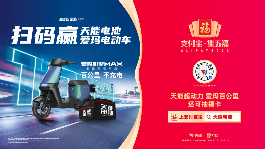 天能与支付宝、百度、腾讯等品牌合作,联合推出了“天能x支付宝集五福”、科创天能百度品牌专区、天能小程序等多个创新项目,成为天能品牌年度传播重要阵地。