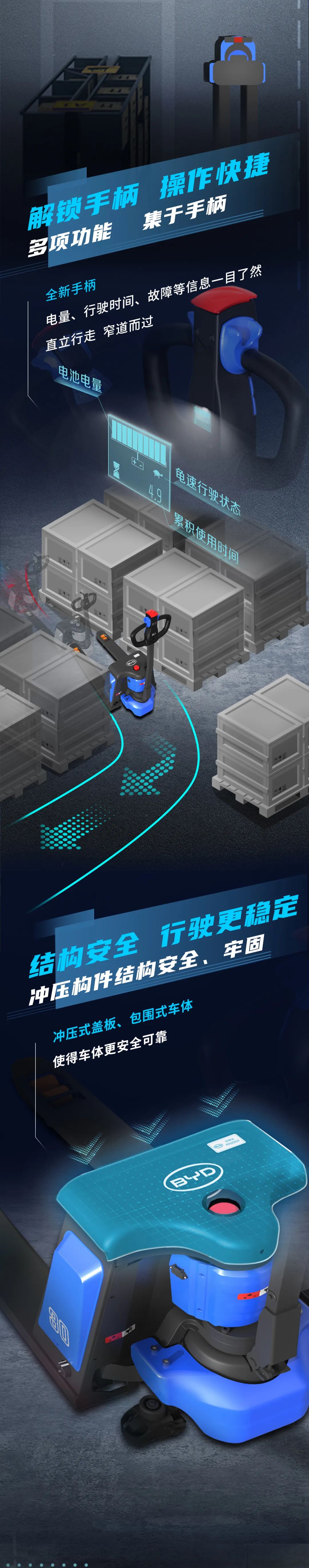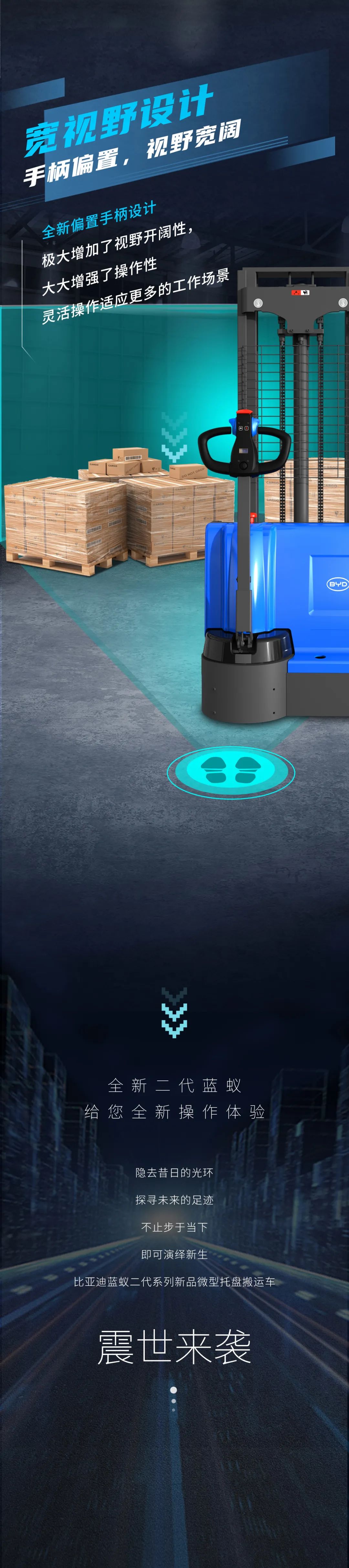 【研发实力】 比亚迪始终坚持“技术为王,创新为本”的理念,在电动叉车研发上投入技术研发人员150人,其中专项研究电器和液压的博士2名,硕士32名,国家211重点本科院校毕业生97名。具备同时研发平衡重式、托盘式、前移式、堆垛式四大系列纯电动叉车的能力。