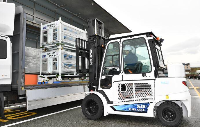 现代摩比斯的一位人士说:"我们计划通过参加明年的政府试点项目,大规模地运营氢动力叉车。叉车中使用的燃料电池还可以作为无人机和小型工业机械的小型动力包,以及挖掘机和大型工程机械的中大型动力包。"