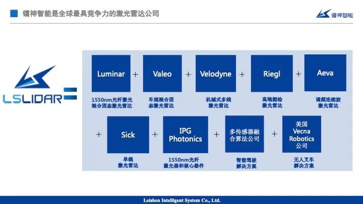 我们需要做的事儿很简单,我狂不狂妄,得看我们做了什么东西。镭神做了什么事儿?你们可以看一下。镭神在激光雷达领域等于Luminar+法雷奥+Velodyne +Riegl + Aeva + Sick +IPG Photonics+多传感器融合算法公司+3D SLAM算法系统解决方案公司,美国Luminar能做的我们全部能做,Luminar做不了的,我十年之前就搞定了。
