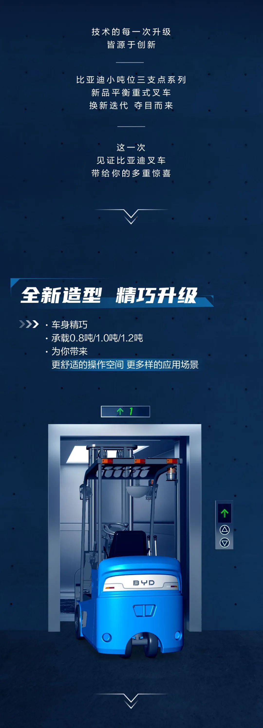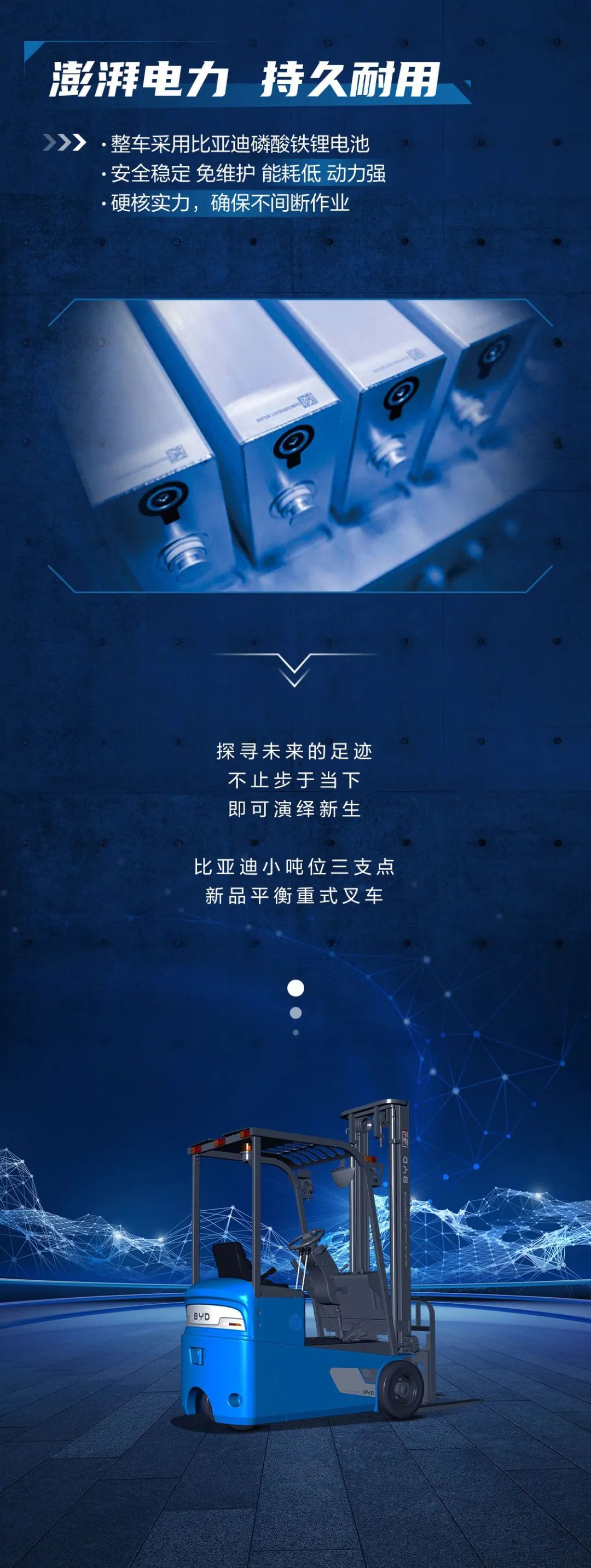 【研发实力】 比亚迪始终坚持“技术为王,创新为本”的理念,在电动叉车研发上投入技术研发人员150人,其中专项研究电器和液压的博士2名,硕士32名,国家211重点本科院校毕业生97名。具备同时研发平衡重式、托盘式、前移式、堆垛式四大系列纯电动叉车的能力。