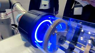 松下控股技术部展出了一款内置力传感器的机械手。他展示了一个想象处理成熟草莓的演示。