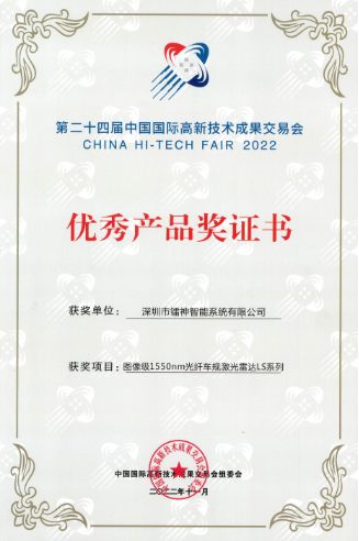 在11月的中旬,镭神智能参加了第二十四届中国国际高新技术成果交易会(简称高交会),在此次展会中,镭神智能凭借图像级1550nm光纤车规激光雷达LS系列,获得了“第二十四届中国国际高新技术成果交易会优秀产品奖”。