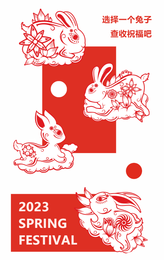 岁序更替,华章日新;新元肇启,云程发轫。值此新春佳节即将到来之际,我们怀着感恩的心情向您致以亲切的新年问候和诚挚的谢意,感谢您在过去日子里对我们的支持和厚爱,选择和信任,预祝大家新春快乐,兔年吉祥。