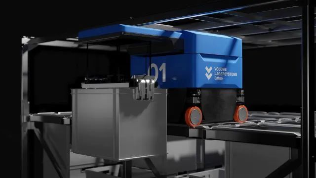 德国Volume Lagersysteme公司 的 Volume DIVE是一个复杂的机器人存储和拣选系统,高度可达 14 米。机器人可以在不借助升降机的情况下在任何位置拣选和交付垃圾箱。存储标准欧元容器以及饮料箱,也可以在系统外使用。尽管 DIVE 是为快速交易而开发的,但它也是耗电小负载应用程序的替代方案。吞吐量可以增加到每小时 4000 个容器。在其最小版本中,Volume DIVE 仅占地 16 平方米。