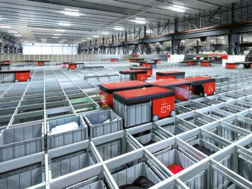 这座自动化仓库有能力每天运送20万件物品,有4名员工。在货物到达并被卸下后,卸货、收货检查、入库、储存、出库、包装、附上发票和分类都是机械化的,由机器人完成。