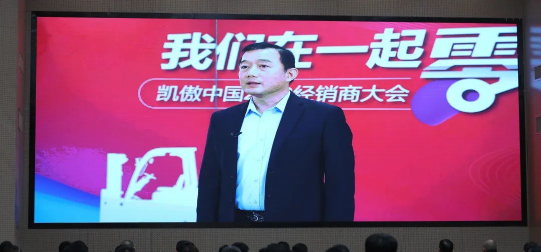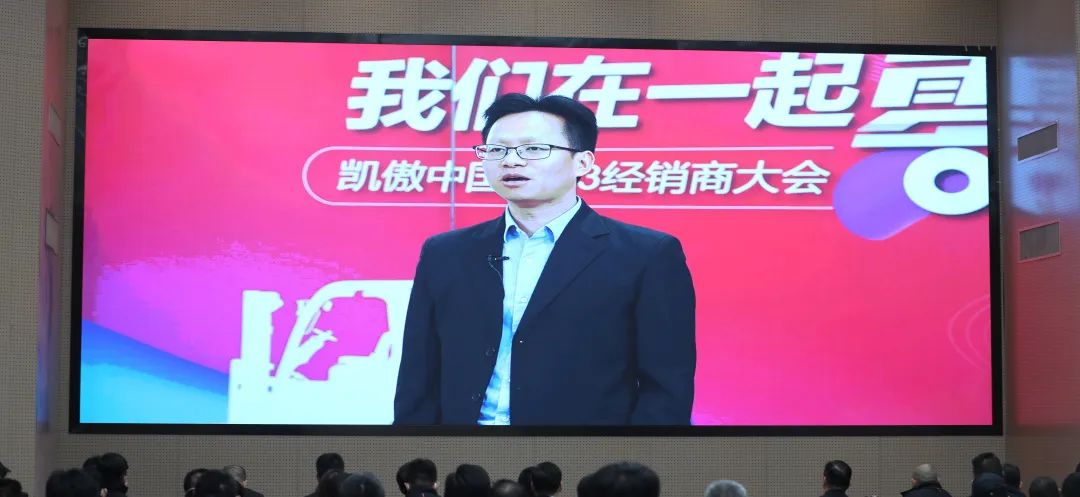 活动中,凯傲集团董事兼凯傲亚太及美洲区总裁郭进鹏先生线上致辞。郭总介绍了凯傲中国2022年市场表现及成果,并对2023年市场预判。在2022年里,全球经济在饱受地源政治、俄乌冲突、能源危机、高通涨、全球央行加薪等的影响下,凯傲集团依然实现了双位数的增长,郭总对所有经销商伙伴们对此作出努力和付出表示感谢,并指出经销商战略是凯傲中国的核心战略之一,只有经销商伙伴们成功了,凯傲中国才能真正的成功。