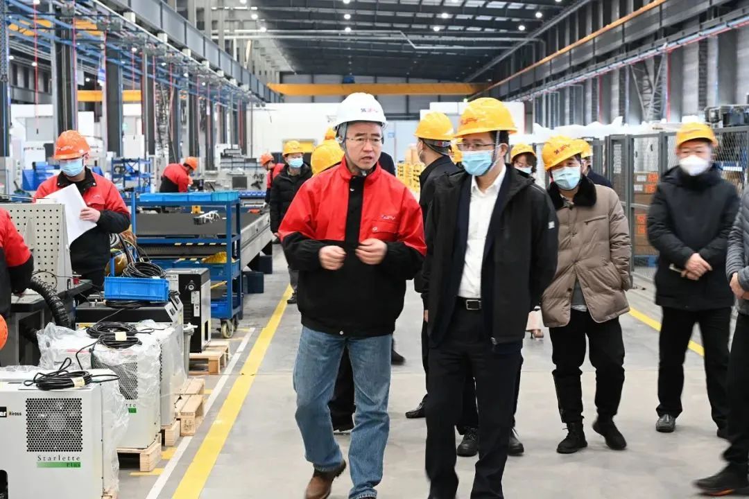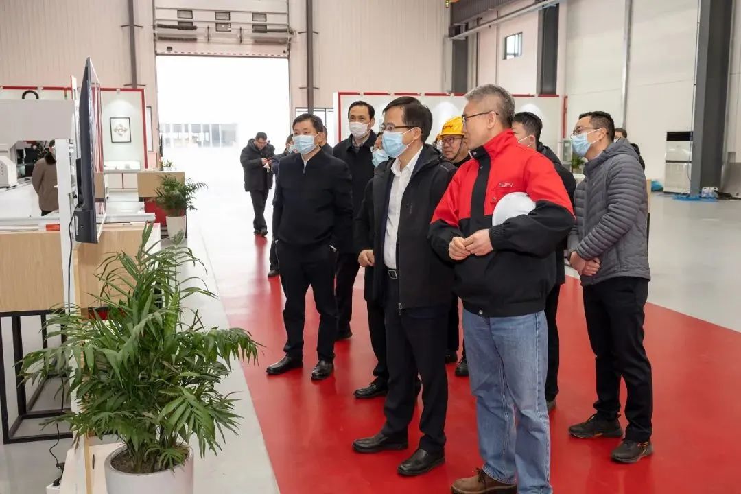 2月2日上午,江苏省工信厅徐军副厅长、装备工业处刘培处长、谭清锰副处长;扬州市政府汤卫华副市长;邗江区政府王庆伟区长等省、市、区领导一行15人莅临金方圆生产基地调研指导。金方圆公司CEO王桂海先生热情接待、全程陪同讲解。