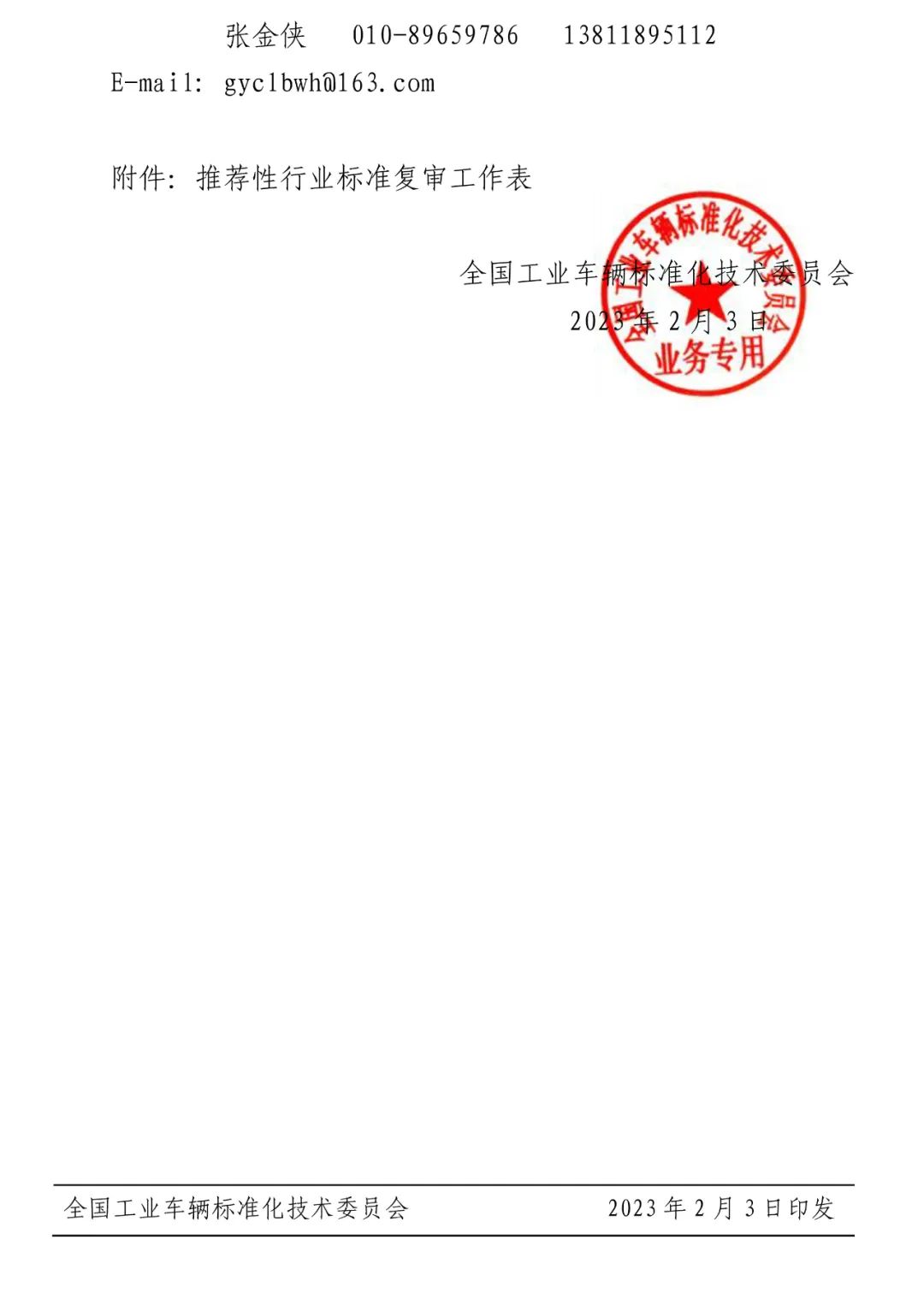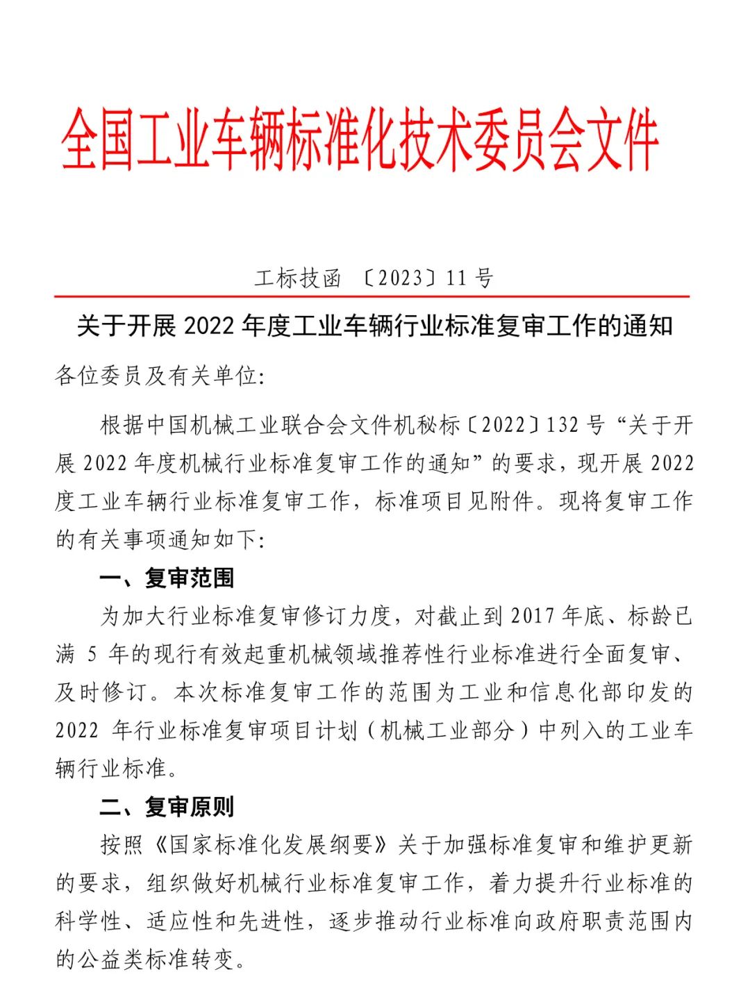 关于开展2022年度工业车辆行业标准复审工作的通知