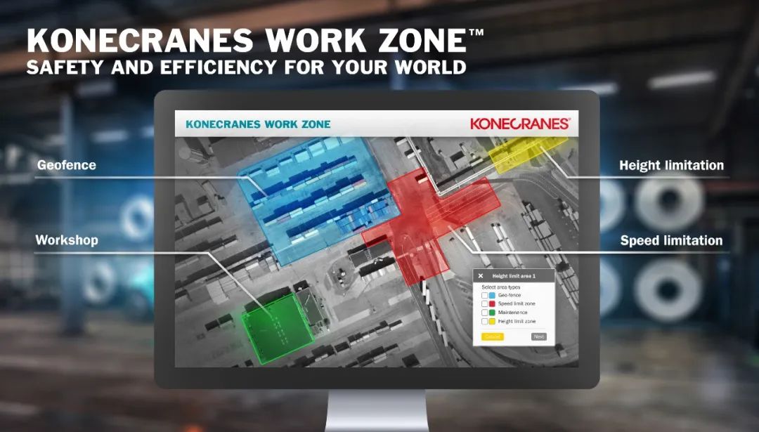科尼客户还可以直接从yourKONECRANES系统设置工作区和参数。您可以预设安全作业区,定义具有速度和高度限制的区域,以帮助保护驾驶员、现场人员或其他车辆和行人。