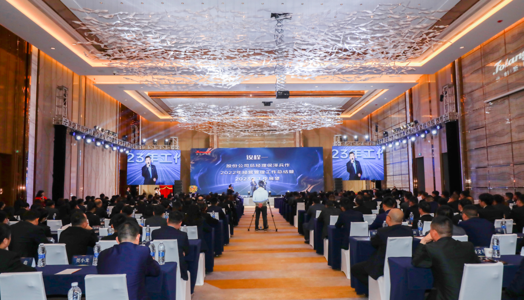会议第一项议程是由公司总经理侯泽兵先生作2022年度经营管理工作总结暨2023年工作展望。在总结中,总经理通过对数据图表全方面、多维度的分析与总结,向参会干部汇报了公司2022年度的各项经营指标和完成情况,并全面总结了过去一年中公司经营管理工作所取得的六点成绩和存在的四点不足。