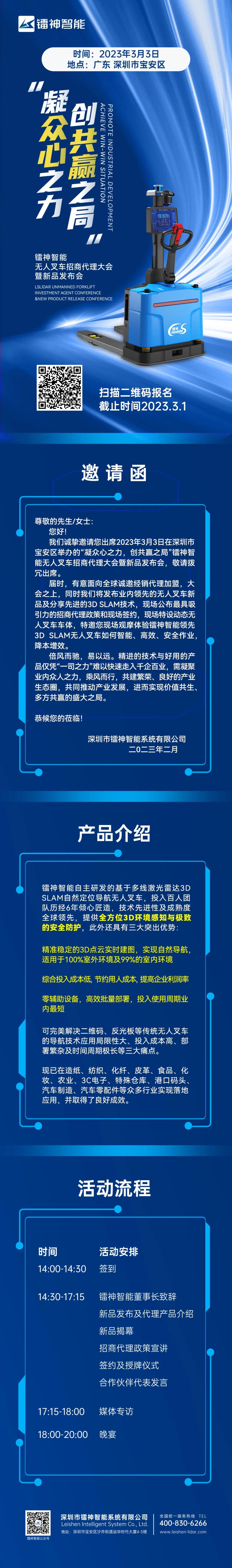 定档!镭神智能无人叉车招商代理大会暨新品发布会即将开幕,诚邀您的参与!
