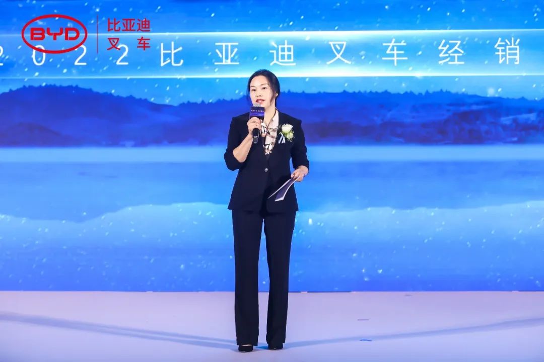 在美丽的杭州,于碧波荡漾的钱塘江边,比亚迪叉车再会高朋,本次大会现场,比亚迪叉车销售总监陈丽萍女士首先向在座来宾致欢迎辞。