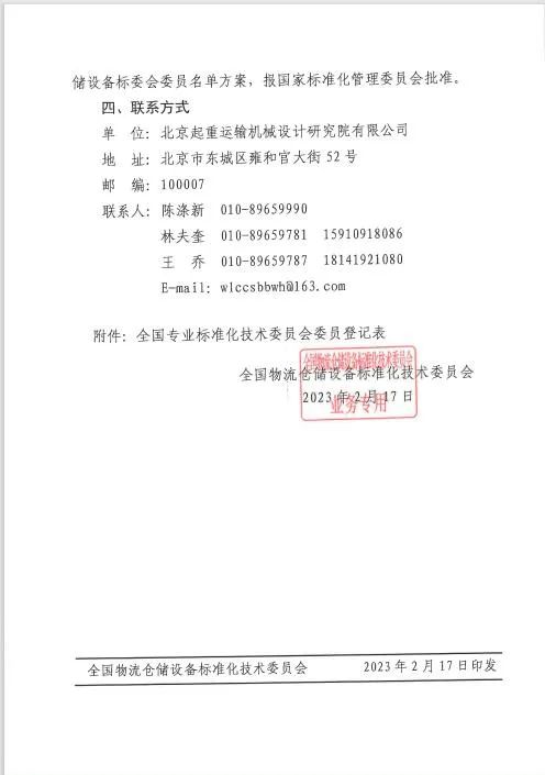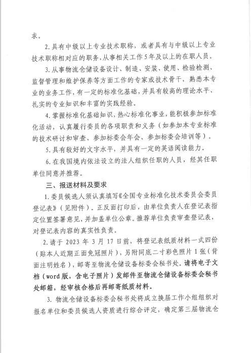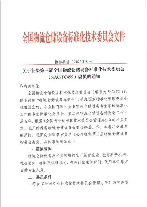 关于征集第三届全国物流仓储设备标准化技术委员会(SAC/TC499)委员的通知