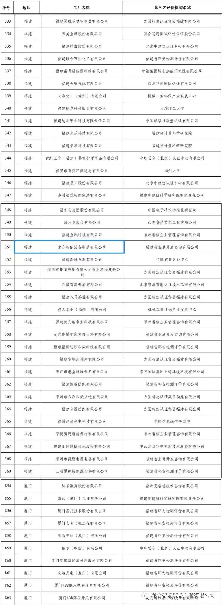 绿色工厂公示名单(福建部分)