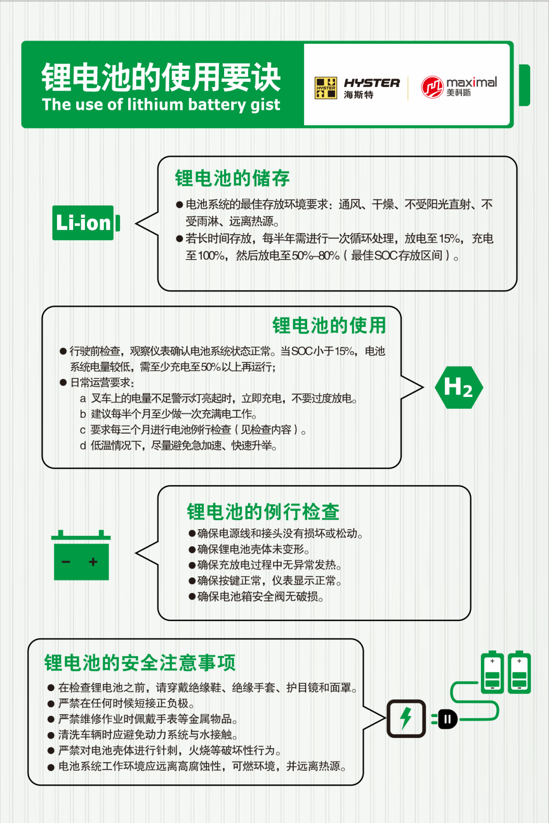 *有关海斯特电动平衡重叉车搭载锂电池相关信息,请咨询产品工程师或您身边的销售顾问!