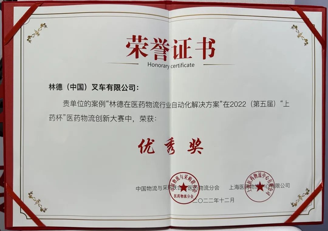 2023年2月25日-27日,2022第九届中国医药物流行业年会在广东省珠海市成功举办,林德(中国)受邀亮相,与医药企业代表、行业专家们深入研讨医药供应链发展趋势及创新之道。会议上,林德凭借多年来深耕于医药物流领域的项目经验,创新的行业应用场景,被授予2022(第五届)“上药杯”医药物流创新大赛优秀奖殊荣。