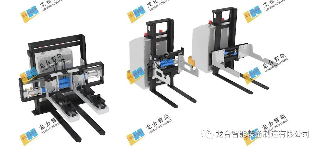 龙合智能设计生产的AGV叉车调距叉适用于叉取不同规格货物的搬运、装卸作业场合,具有高性能、高效率、高可靠、多样性的特点。