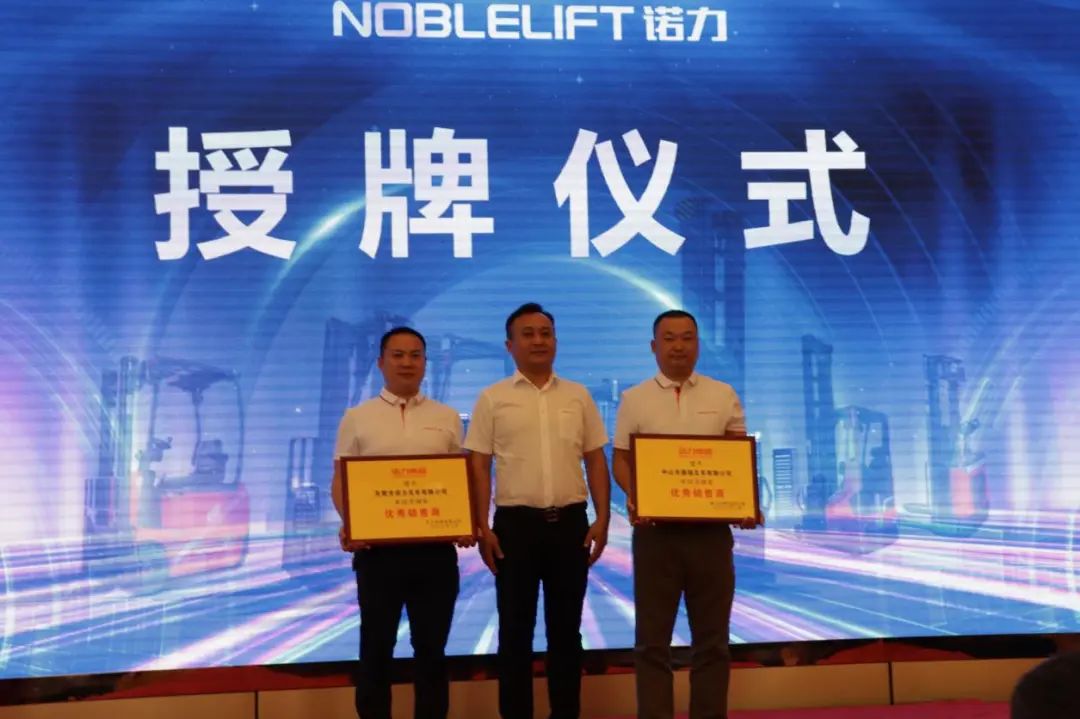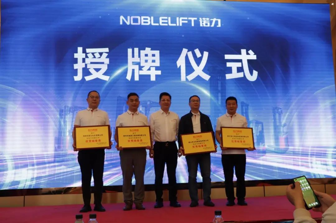 随后,诺力为电动平衡重叉车、仓储车优秀经销商合作伙伴企业代表颁发了荣誉牌匾。刘总对所有获得诺力经销商的公司表示热烈祝贺,并表示,诺力将与广大经销商一起共同做大做强、共享未来。授牌企业也表示2023年将再接再厉、诚信经营,为推动诺力品牌建设、促进诺力产业高质量发展,在国家“节能减排”号召下作出新的贡献。广西经销商表示,诺力品质卓越,售后服务快捷,且给经销商的扶持力度大,他会一直坚持跟随着诺力!佛山经销商也表示,他与诺力合作已好些年头了,和诺力一路走来,看到诺力的成长、品质更稳定、口碑也更好,他相信有更多的用户会选择诺力!