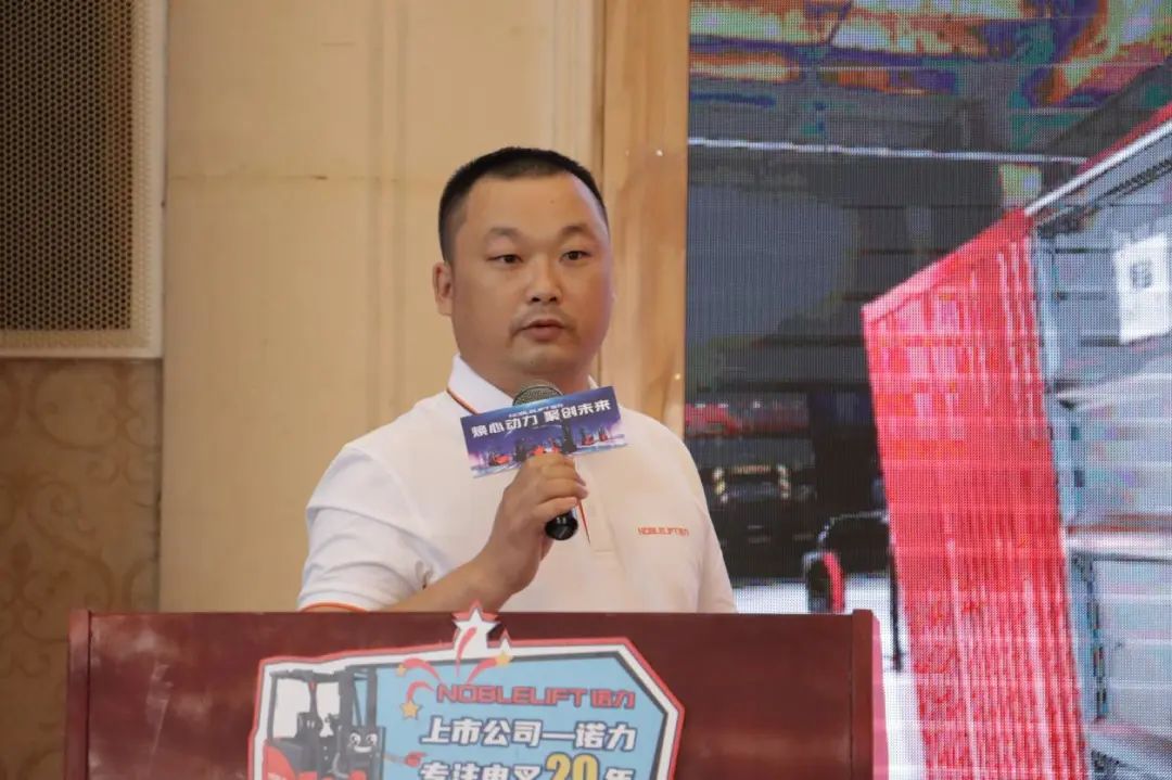 接下来,优秀经销商代表分享了仓储车销售成功经验。为客户改造货架,加高货架高度后,再配置诺力仓储车,大大提高了客户仓库的利用率的案例。经销商最后说:“我们从客户的角度出发,为客户解决实际问题,降本增效,用心做好服务,就不愁销量上不去。”
