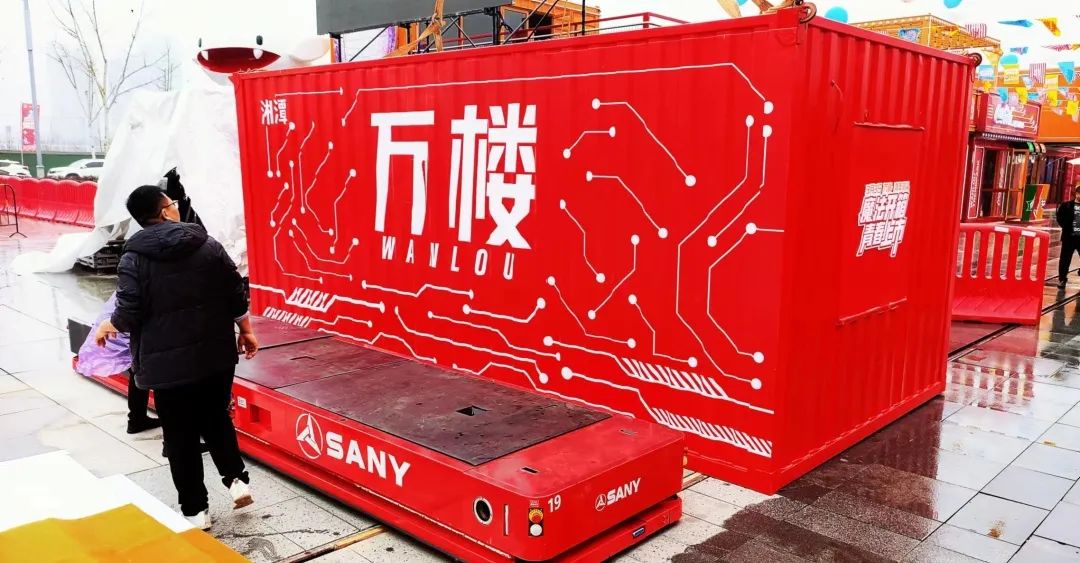 3月3日,三一重载AGV助力湘潭万楼·青年码头开市大吉!活动现场,湖南省湘潭市市委领导全程参与并见证本次青年码头集市的开市仪式。
