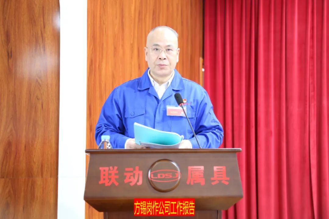 公司党委书记、总经理方锡岗向大会作题为《踔厉奋发启新程笃行不怠向未来奋力谱写联动属具高质量发展新篇章》的工作报告。报告全面回顾了2022年各项工作,指出了存在的不足和问题,明确了2023年重点工作任务。