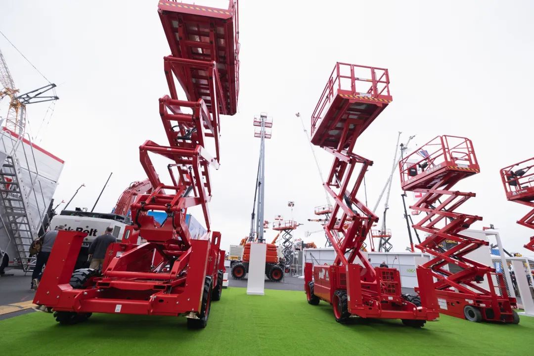 在以红色为主色调的展区内,临工重机重点展示了桅柱式高机、二代剪叉、越野剪叉、直臂、曲臂等高机产品,它们融合临工重机在高机领域的新型研发成果和生产工艺,无不是在智能化、数字化及节能环保方面做到了行业的极致,产品的绿色环保和工作效率高等性能优势得到了众多客户的一致认可。