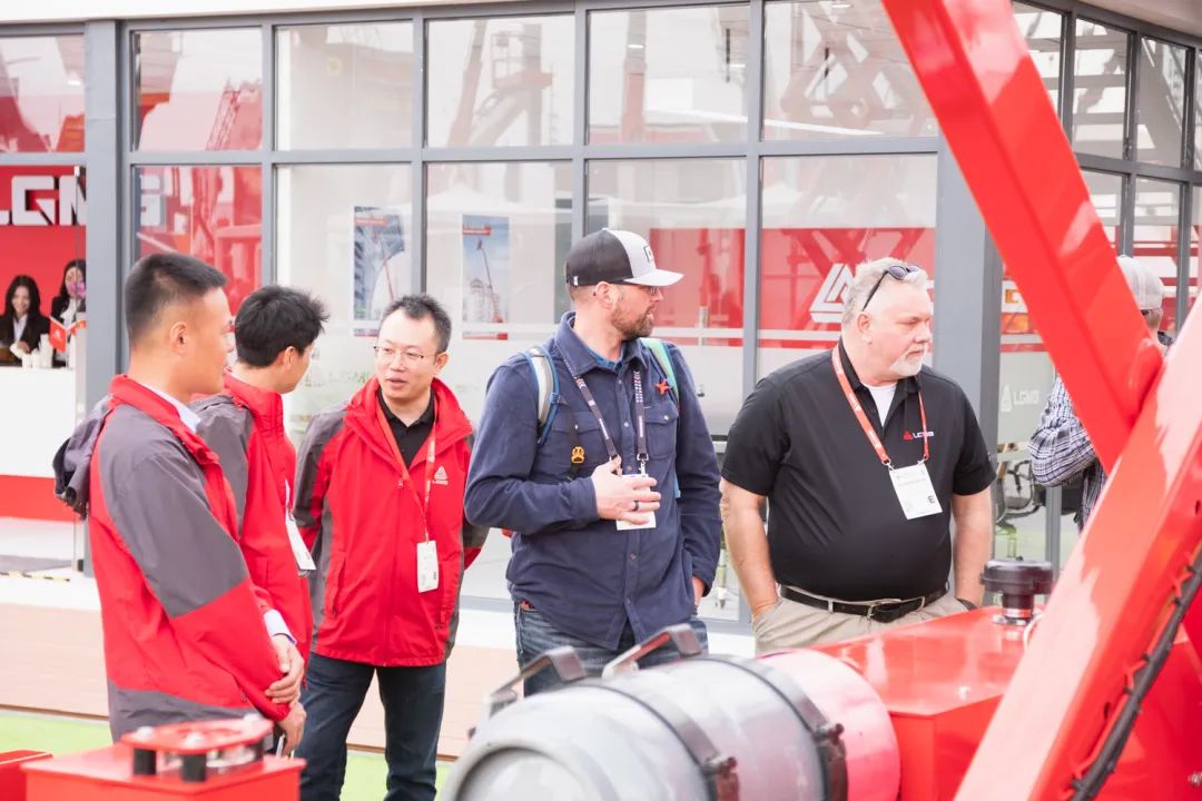 展会期间,临工重机展区内人头攒动,来往客户观摩设备、合作交流、商务洽谈,这里也成为整个展会最耀眼的区域之一。