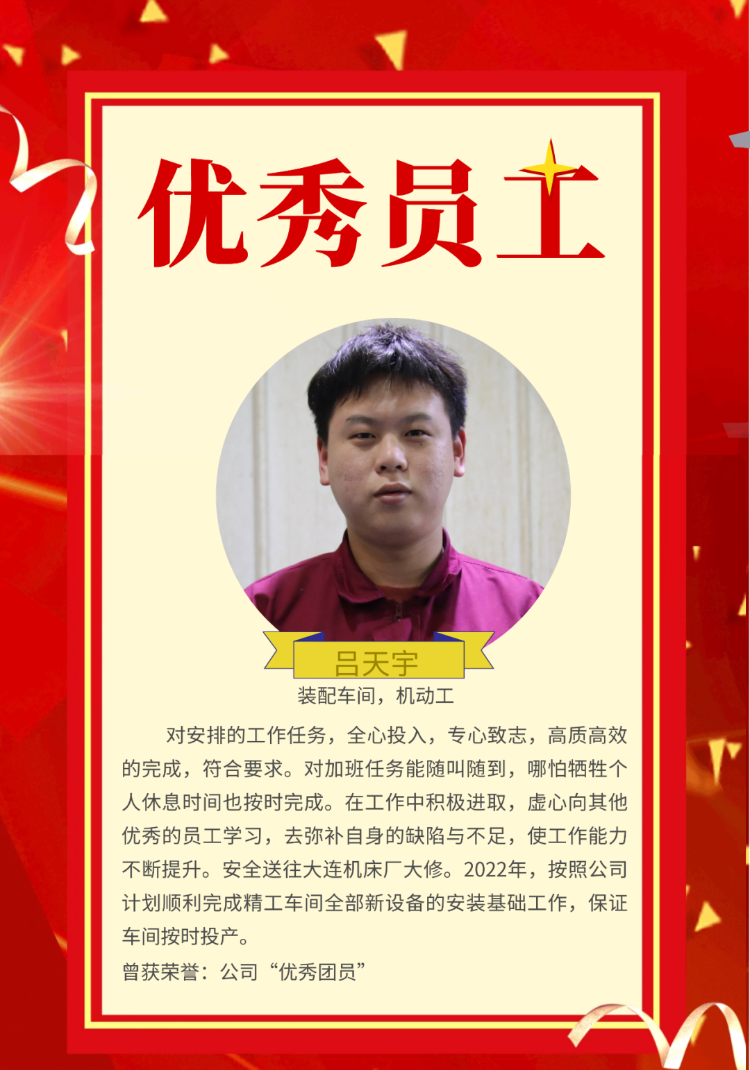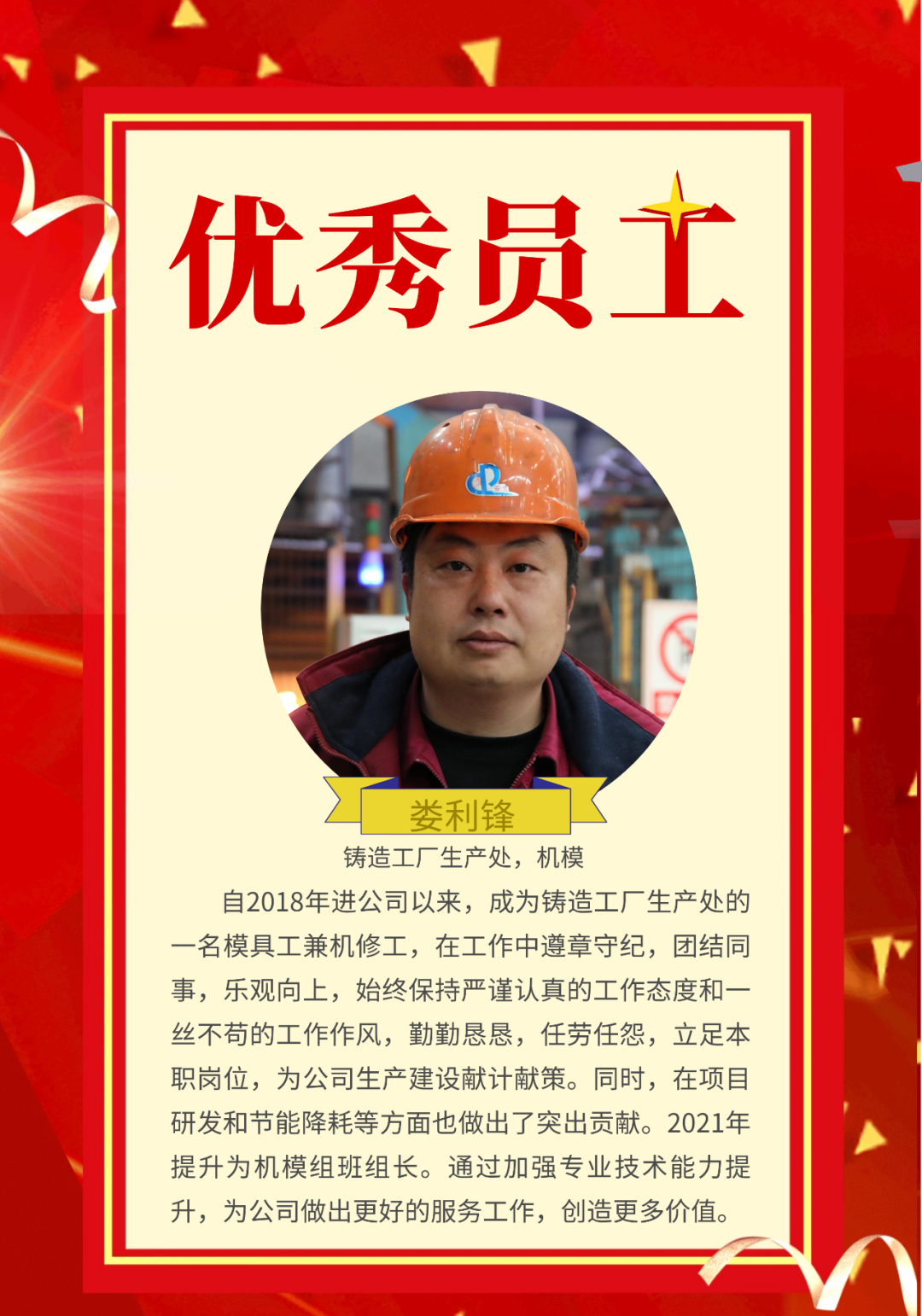 “创新争优树形象 万众一心谱篇章”新柴股份2022年度先进风采--优秀员工(第五期)
