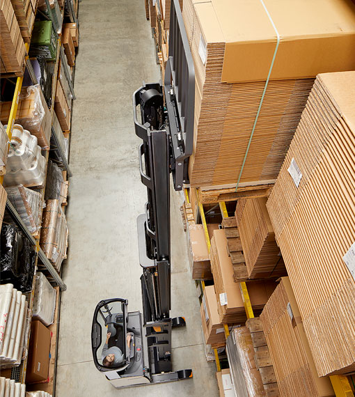 ESR 1000 前移式叉车通过随车提醒、自动协助和提供上下文指导以帮助提高操作员意识的动态指导,使安全更加人性化。将其视为车载虚拟教练。