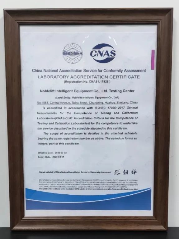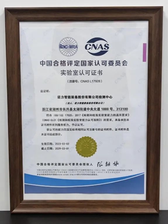 暖春伊始,万物新生,诺力再度传来喜报。2023年3月11号,诺力智能装备股份有限公司检测中心收到了来自中国合格评定国家认可委员会(英文名称为:China National Accreditation Service for Conformity Assessment 英文缩写为:CNAS)下发的认可决定书和认可证书。