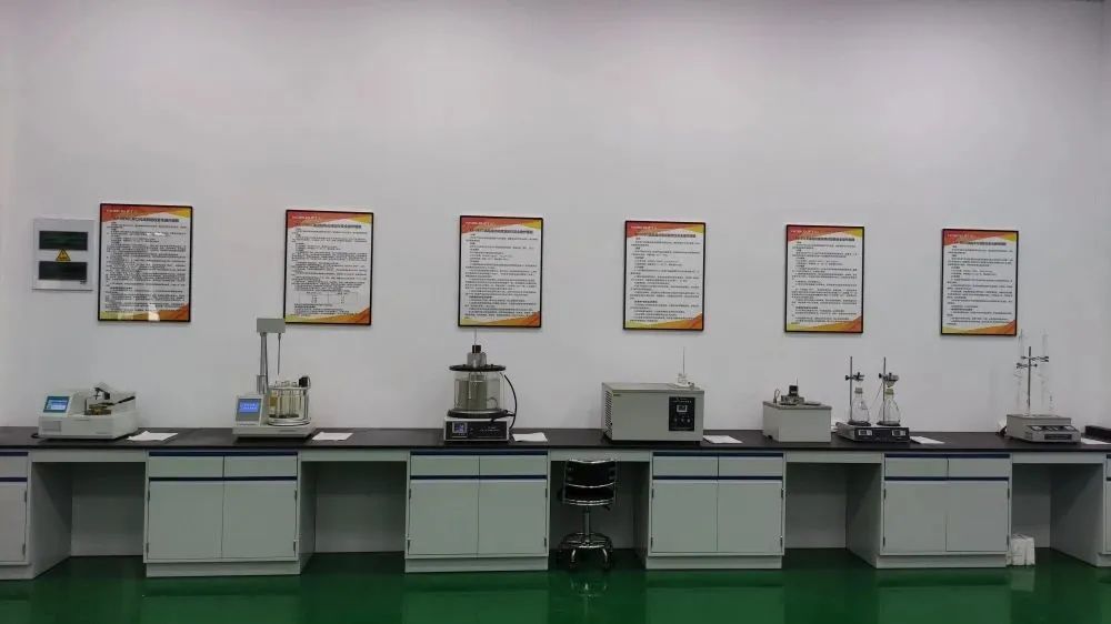 油品试验室配备了闪点测试仪、倾点测试仪、运动粘度测试仪、抗乳化测试仪、水分测试仪及机械杂质测试仪。