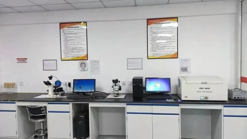 化学分析室配备了金属材质直读光谱仪、X射线荧光光谱仪及金相分析显微镜。