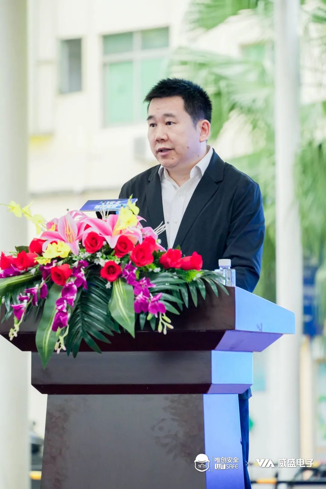 接下来由威盛电子深圳分公司总经理黄智炜先生在新品发布会上致辞,他谈到了威盛电子进入工业车辆工程机械的安全领域的历程、目前威盛电子在行业的影响力、公司研发情况及与唯创安全合作情况,在双方共同努力,以人工智能创造全新的安全化、数字化、高效率的产品。黄总说:“随着国家TSG81安全技术改革要求的标准及举措在去年发布并落地执行,我们将与唯创安全更深入合作,促进技改方案的落地,用人工智能技术进行监管安全升级,通过面对面深度交流,希望推进人工智能在全球及中国工业车辆工程机械的驾驶安全。”